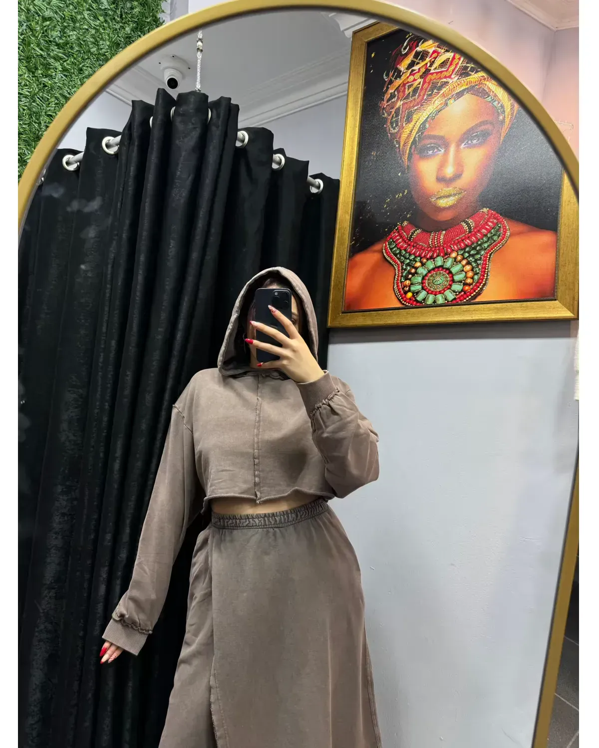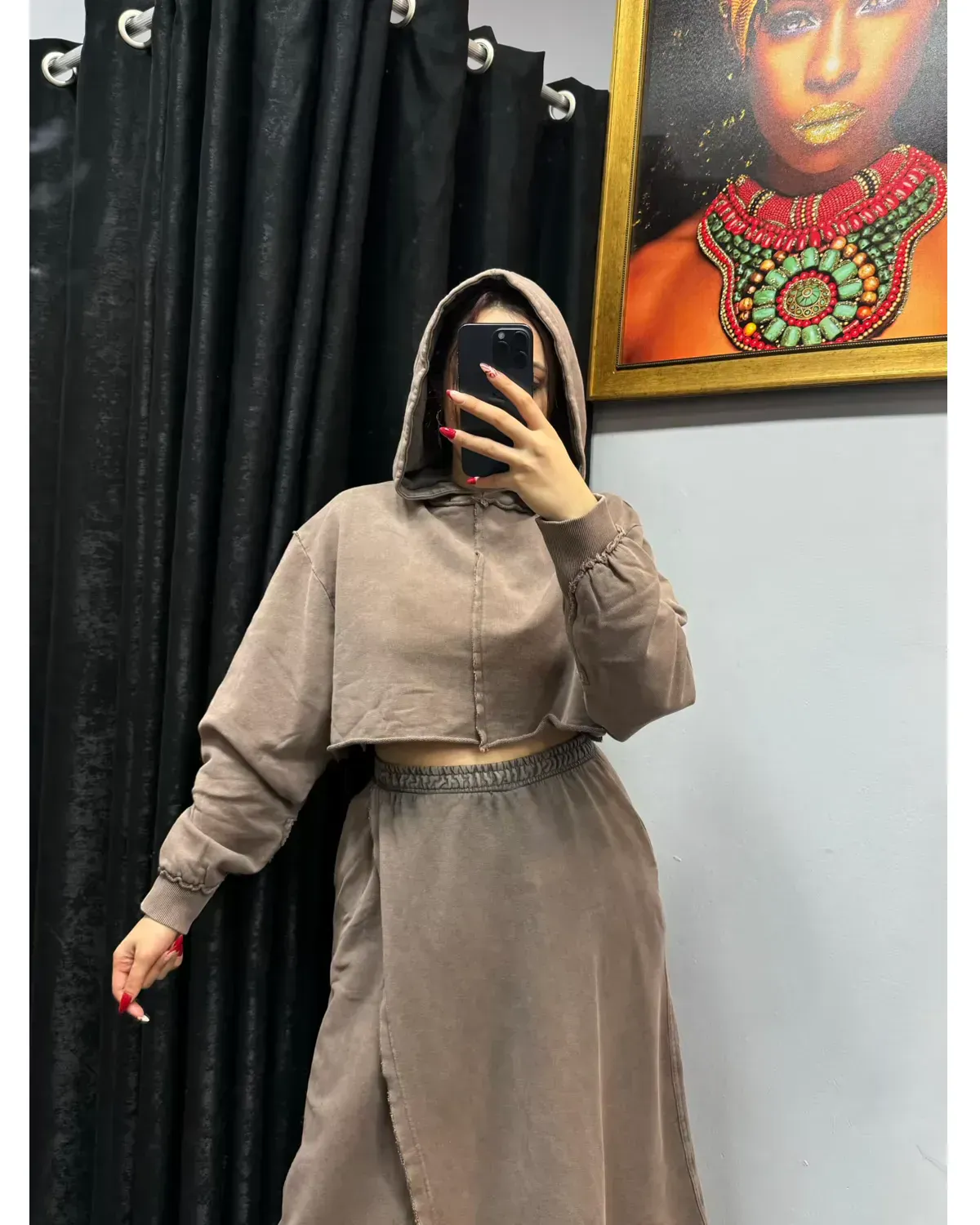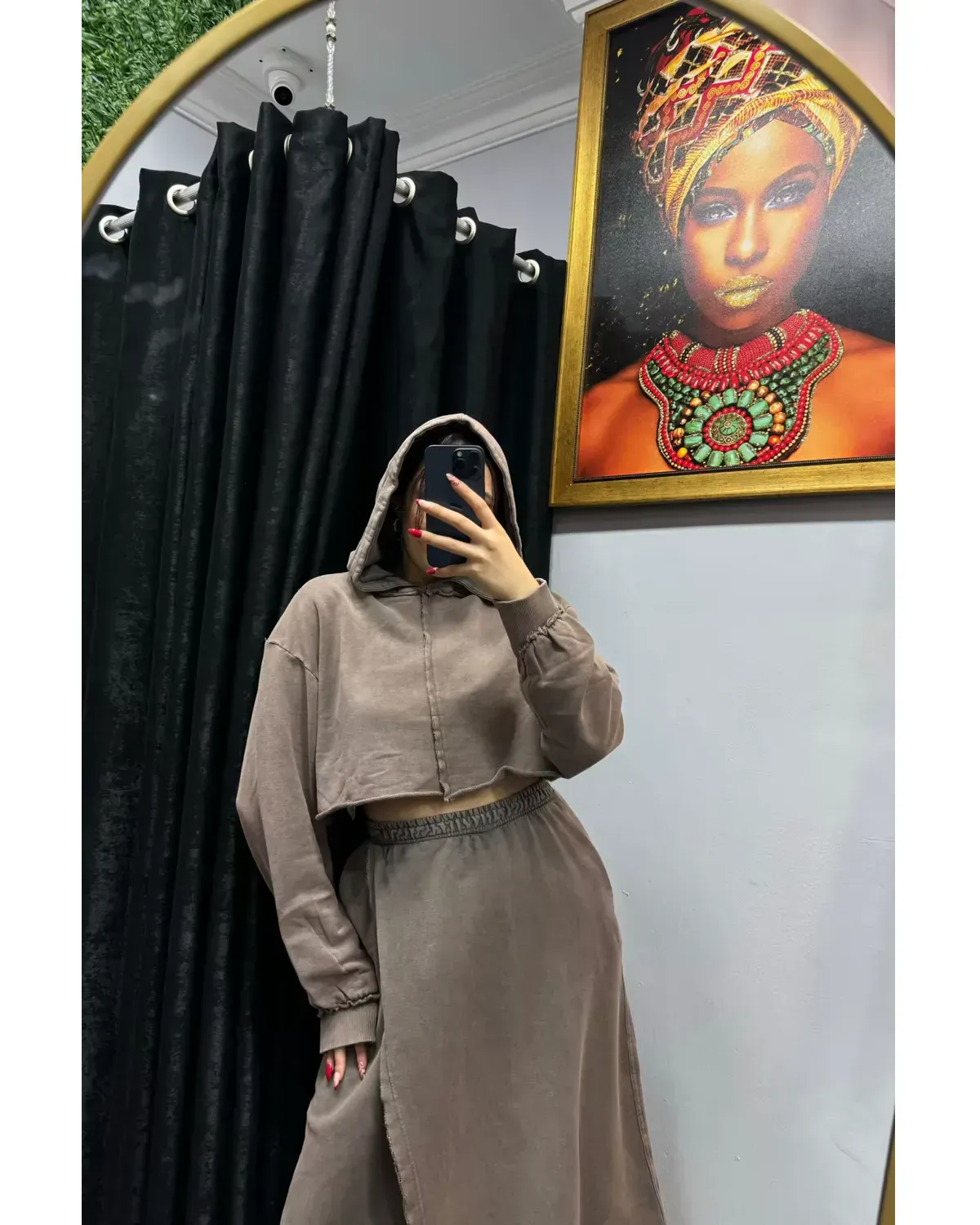 Minimalist çizgileri ve sıcak tonlarıyla Antik Kahve Etekli Takım, gardırobunuza sofistike bir hava katacak. Rahat kesimi ve şık tasarımıyla hem günlük kombinlerde hem de özel davetlerde tarzınızı ön plana çıkarır.