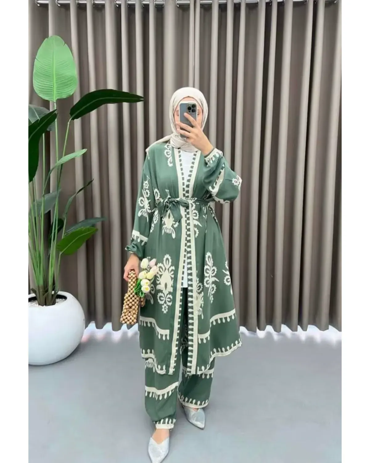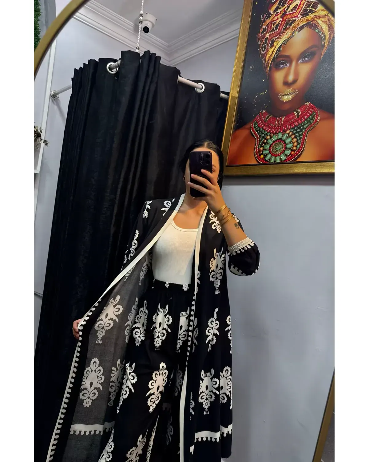 Yumuşak viskon dokusu ve dökümlü formu ile bu takım, yaz aylarında hem rahatlığı hem zarafeti bir arada sunar. Günlük stilinize doğal bir şıklık katmak için ideal!