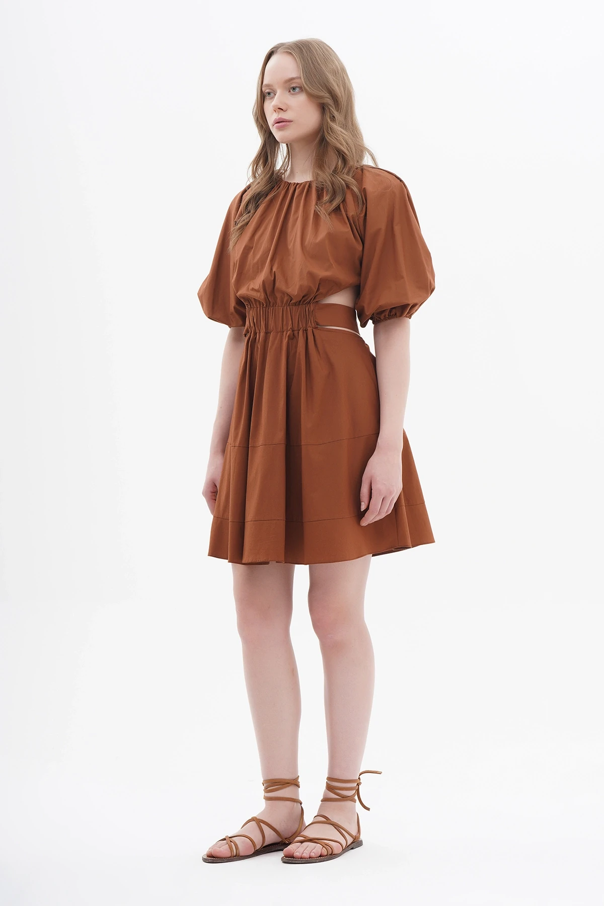 Beli Lastikli Pencereli Gömlek Elbise