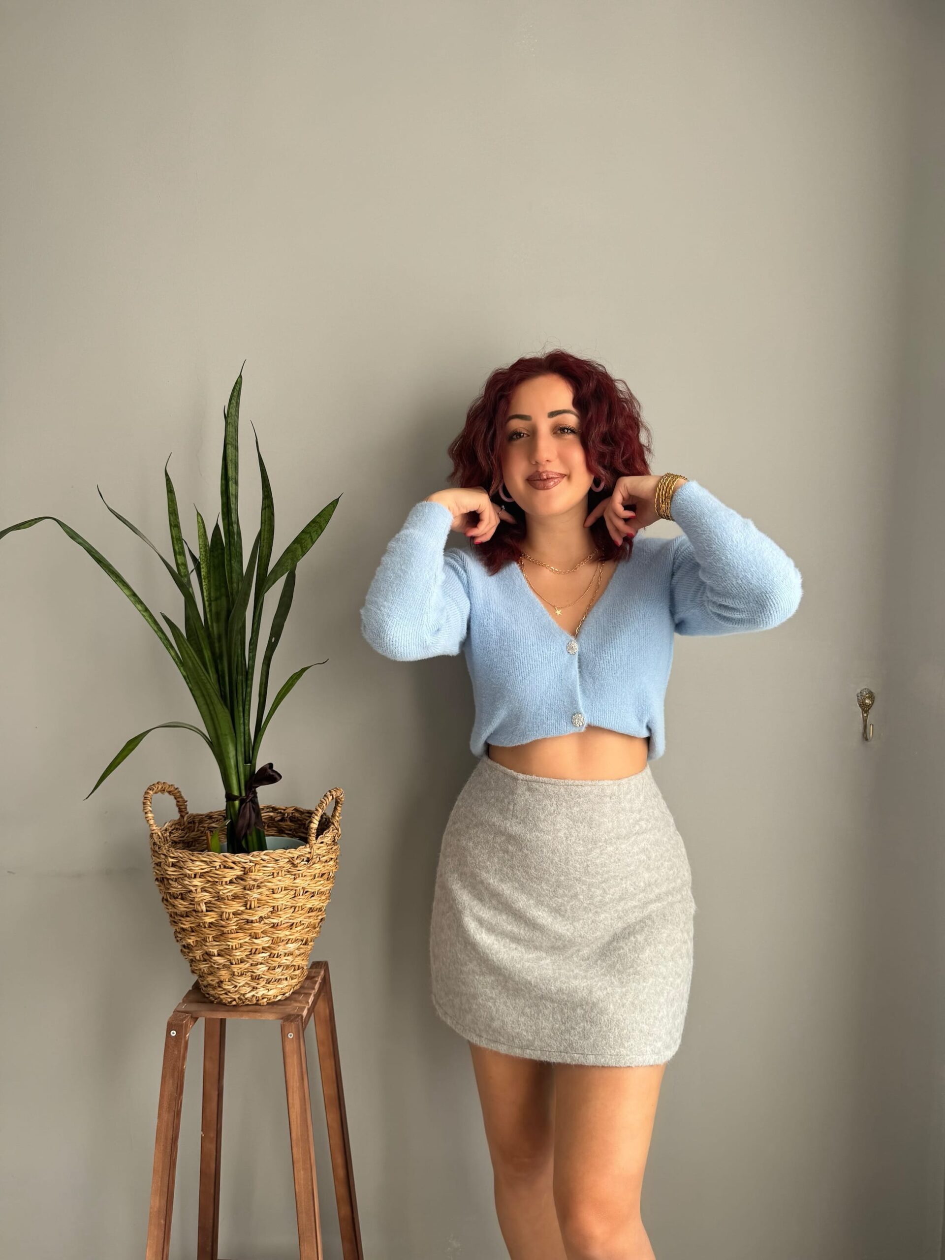 🌫️ Şıklığınızı ve rahatlığınızı ön planda tutan gri tüylü etek, zarif tasarımı ve yumuşacık dokusuyla her kombinle uyum sağlar.