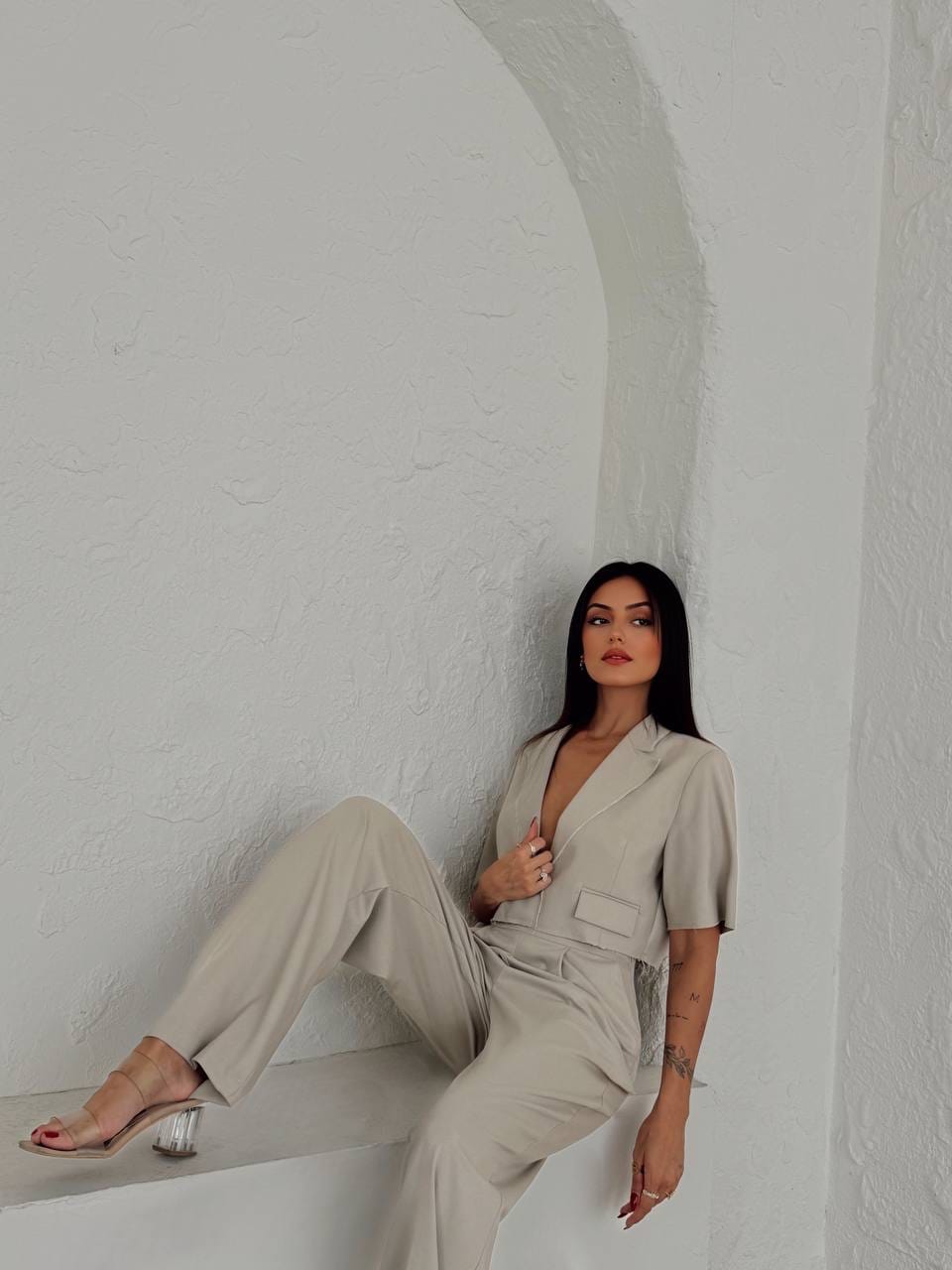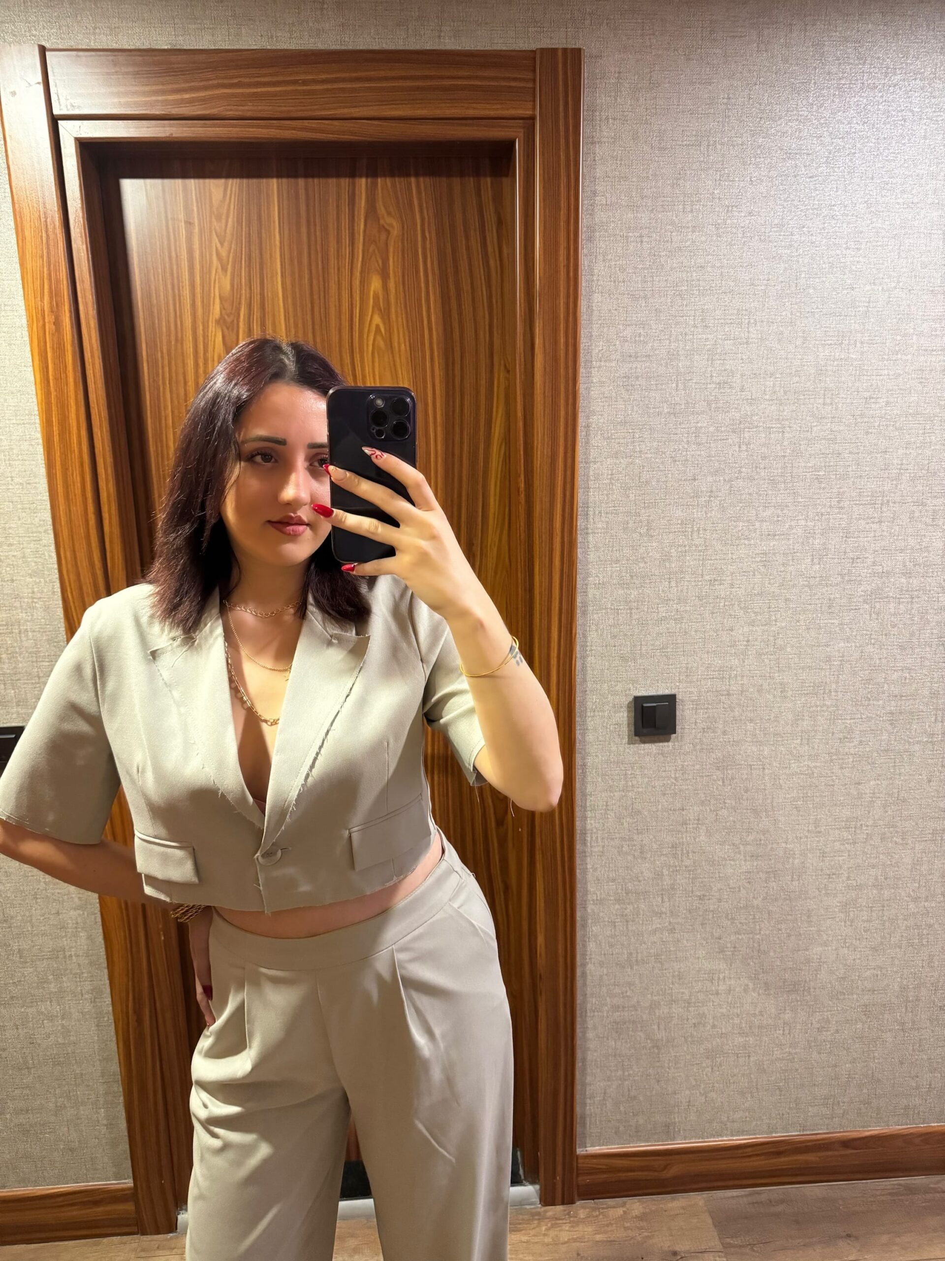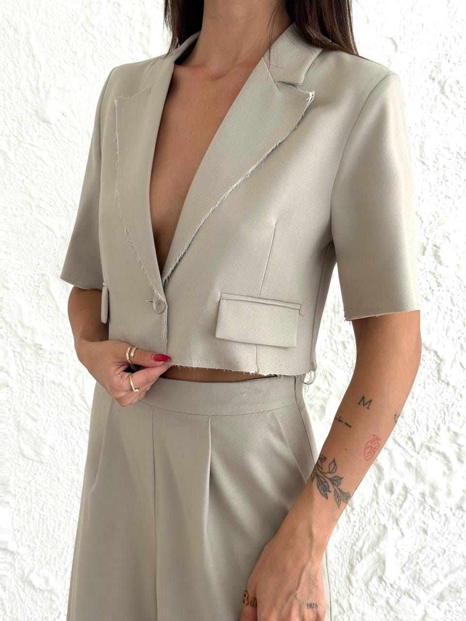 Krem kısa kol crop ceket takımla sadeliğin şıklığını tarzınıza yansıtın! 🌟