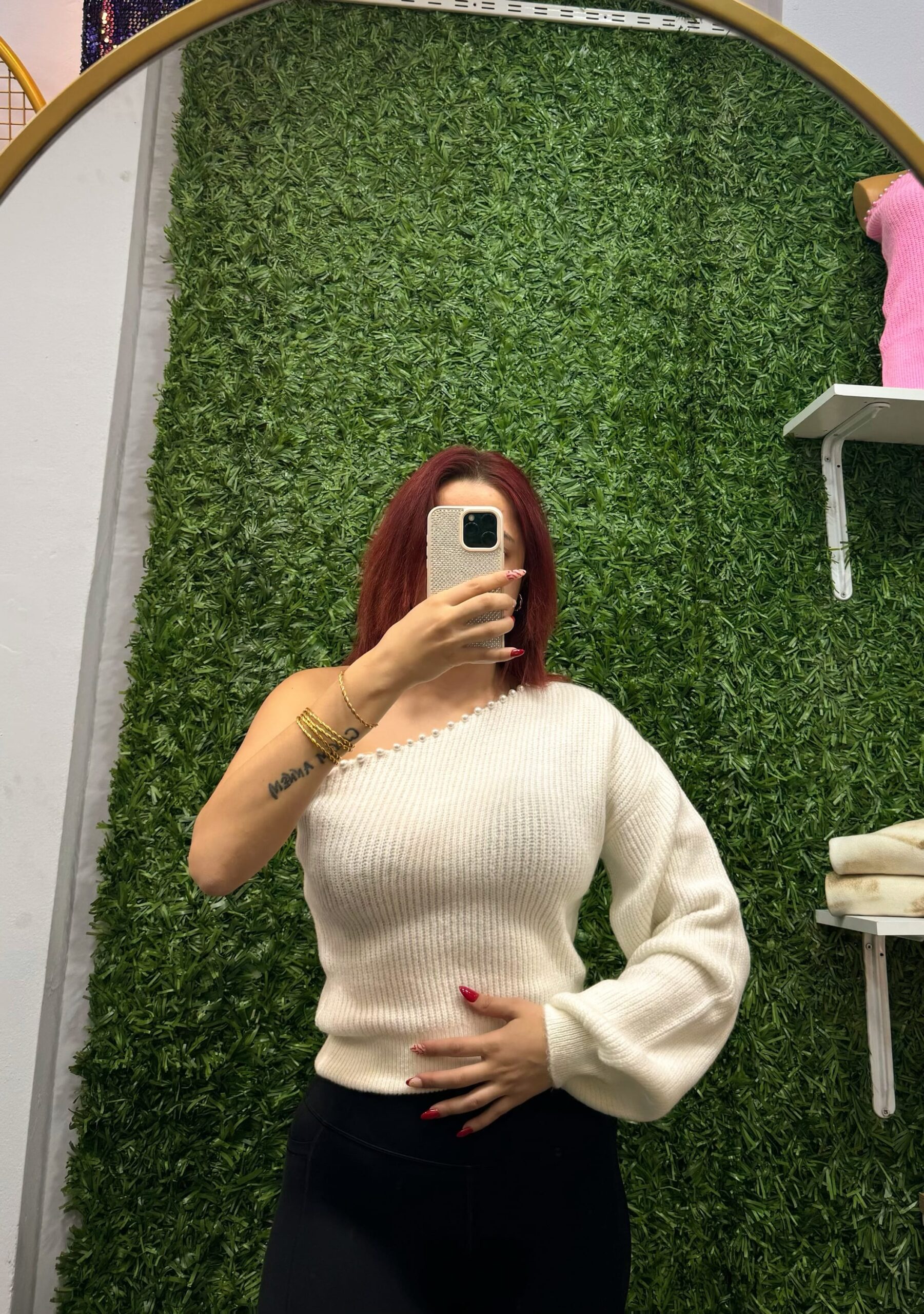Omuzlardaki inci detaylarıyla şıklığınızı ön plana çıkaran bu kazak, hem günlük hem de özel kombinler için vazgeçilmez bir parça!